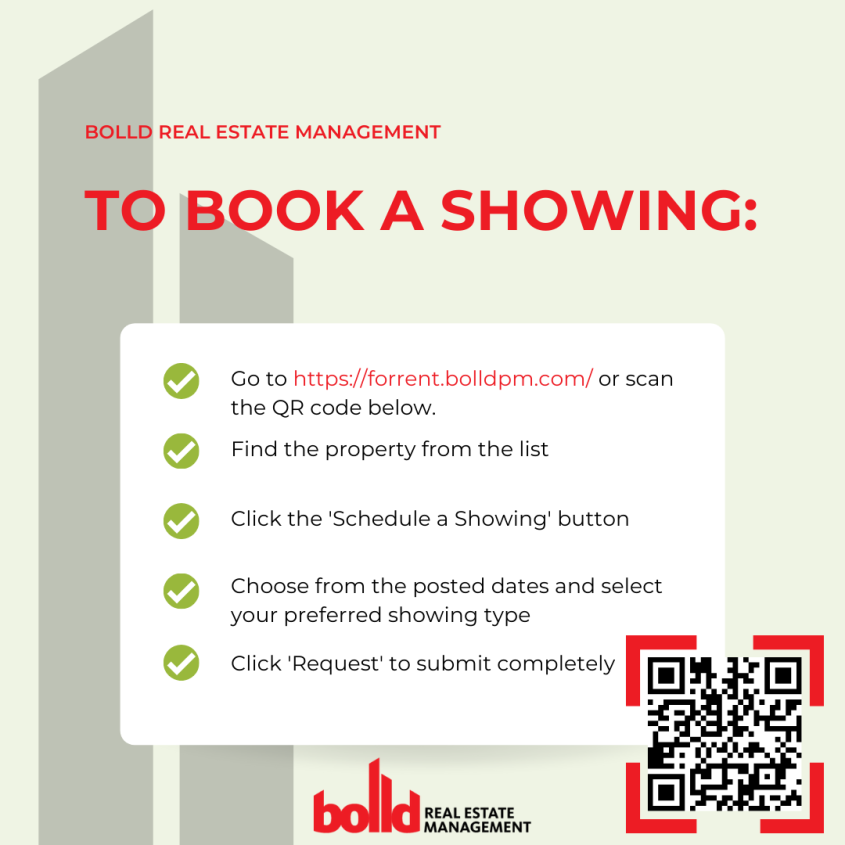 Bolld Real Estate Management is a professional management company. We require that all applicants provide us with up to date and accurate information. We want to work with each applicant on getting their application approved although they must meet these requirements: