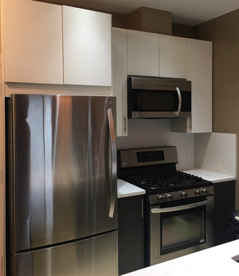 Beautiful New 4-story building offers this lovely 1-bedroom suite on 3rd level. Located in desirable Terra Nova area close to shopping, transit & recreation. Quality finishing throughout with energy-star LG stainless steel appliances, built-in security system, A/C, Nu-Heat bathroom floor, private built-in safe + Natural Gas BBQ hook-up on balcony.