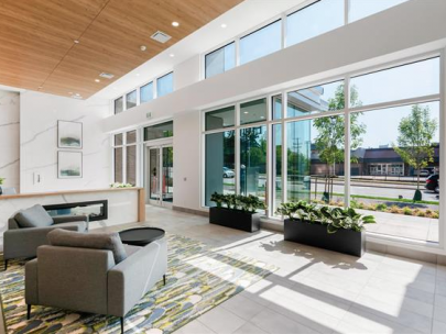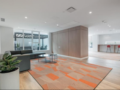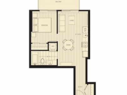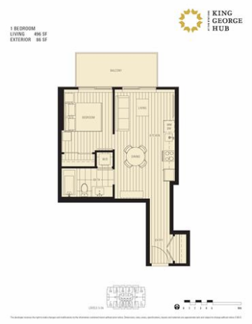 Defined by clean, contemporray spaces, the bright interiors at KIng George Hub feature refined finishes that complement the community's modern architectureThe kitchen and dining spaces are interconnected, large windows frame stunning panoramic views and warm laminate wood flooring throughout.