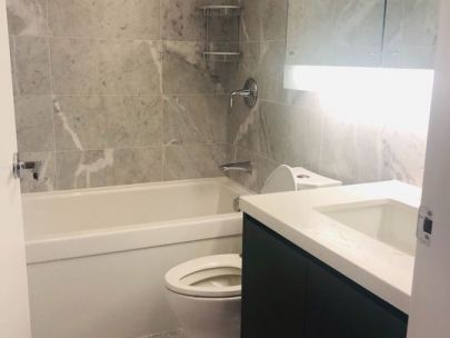 Ultimate urban experience at PARK AVENUE WEST. This luxurious 1 bedroom suite + den offers 538 sq.ft of a highly functional layout with no wasted space and a 58 sq.ft. private balcony. High-end kitchen features laminate cabinetry with open glass display shelving and under-cabinet lighting, marble tile backsplash, engineered quartz countertop, and integrated appliance package. Other features include upgraded laminate floors, marble bathroom accents, and Venetian blind window coverings. Park Ave West offers the best RESORT-LIKE AMENITIES in the city!