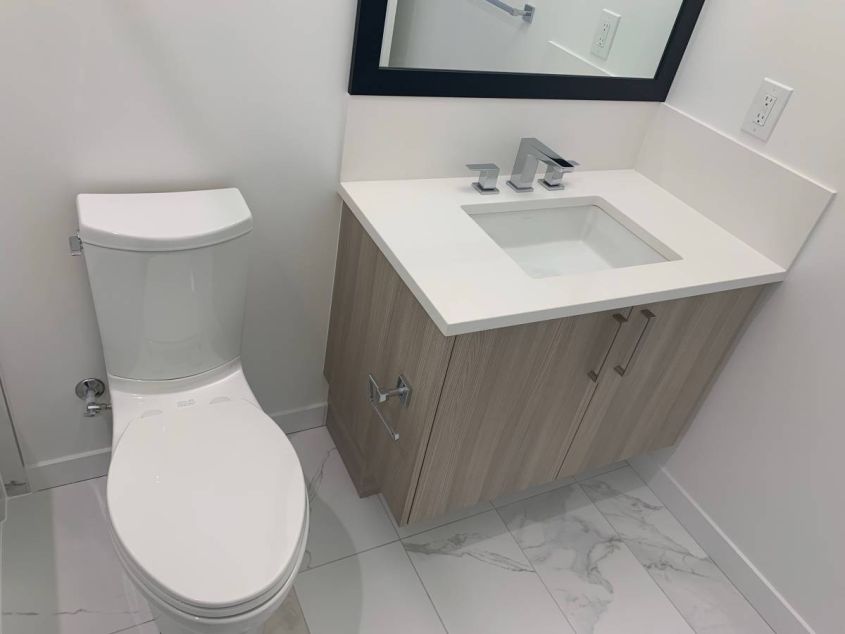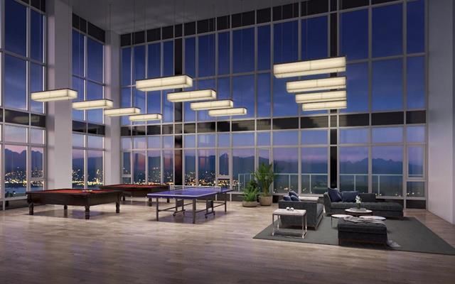 Spacious design, 8'6 ceilings. Floating style cabinet in the bathroom with quartz countertop. 25,000sf of amenities -- fitness centre and yoga studio, private dining, business/study lounge, meeting rooms and the ONE CLUB -- an indoor/outdoor rooftop lounge with panoramic view from the 44th floor with BBQ stations, firepit and a chef's kitchen.