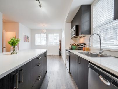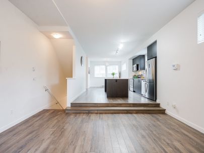 DESCRIPTION: Welcome to this very BRIGHT END CORNER UNIT, fantastic layout 3 bed & 2.5 bath townhouse in "Guildford the Great" built by Dawson & Sawyer. Dining/living & kitchen on the main. Open concept Kitchen with imported Quartz countertops & stainless steel appliances. Front load washer and dryer. Top floor features 3 beds & 2 full baths. 2nd floor includes large kitchen with an island, the living Room, dining room, patio and a powder room. Ground floor includes parking for two cars, Storage and access to backyard. Central location, Minutes away from Guildford shopping mall & Guildford Rec, transit and school.