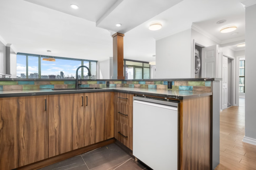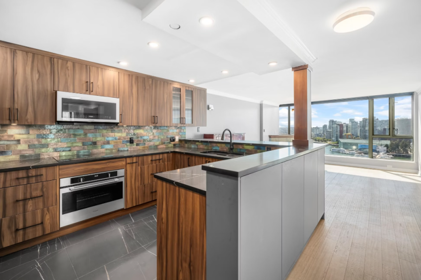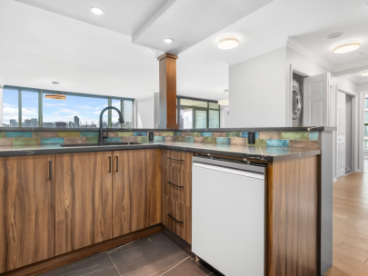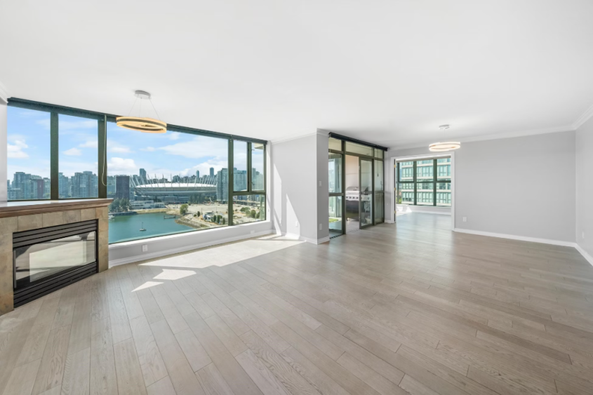 SPECTACULAR UNOBSTRUCTED VIEW! Spacious, luxurious, and fully renovated 3 beds, 2 baths condo in the highly sought-after Bosa-built "The National" building in Olympic Village. Boasting 1,462 sqft of interior living space, this stunning home also offers a sun-drenched west-facing patio, providing breathtaking views of False Creek, Science World, & panoramic city views. Featuring brand-new appliances, fireplace, lighting, sprinklers, raised ceilings, & custom-made cabinets. Lumon-style balcony cover that can open up or be enclosed depending on the season. Heated pool & AC gym. Situated just steps away from the sea wall, shops, and restaurants. This fantastic unit also comes with two full-sized side-by-side EV parking spaces and 1 storage locker.