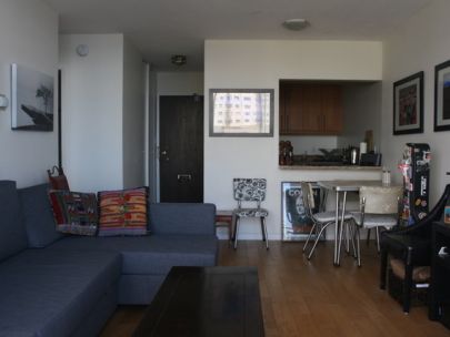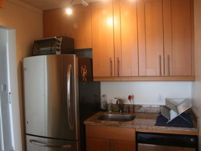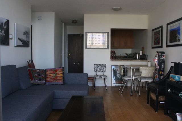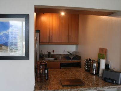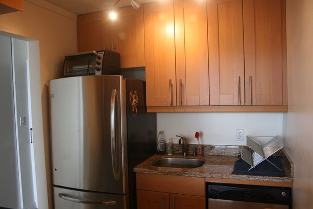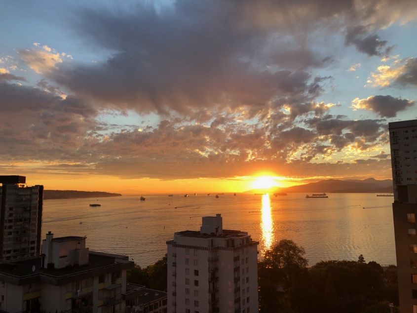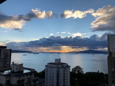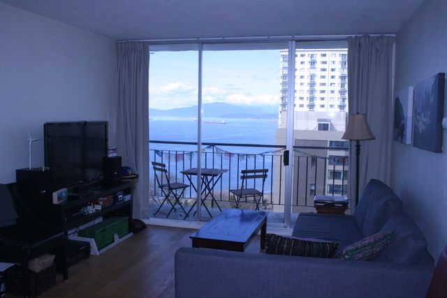 The unit is on the 18th floor with a spectacular view of English Bay and the mountains from the bedroom, living room, and balcony, and is only 3 blocks away from Sunset beach and ocean side bike/walking paths. Walking distance to great shopping along Davie or Denman Street, with excellent bus transit to downtown and the skytrain. The cute kitchen has new stainless steel kitchen appliances (fridge, stove, microwave, and dishwasher) and granite counter tops with ample cupboard storage space. There are hardwood floors throughout, with tiles in the entrance area, kitchen, and bathroom. It comes with a storage locker and free underground parking.