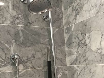 – Polished chrome Grohe faucet, tub spout and showerhead
