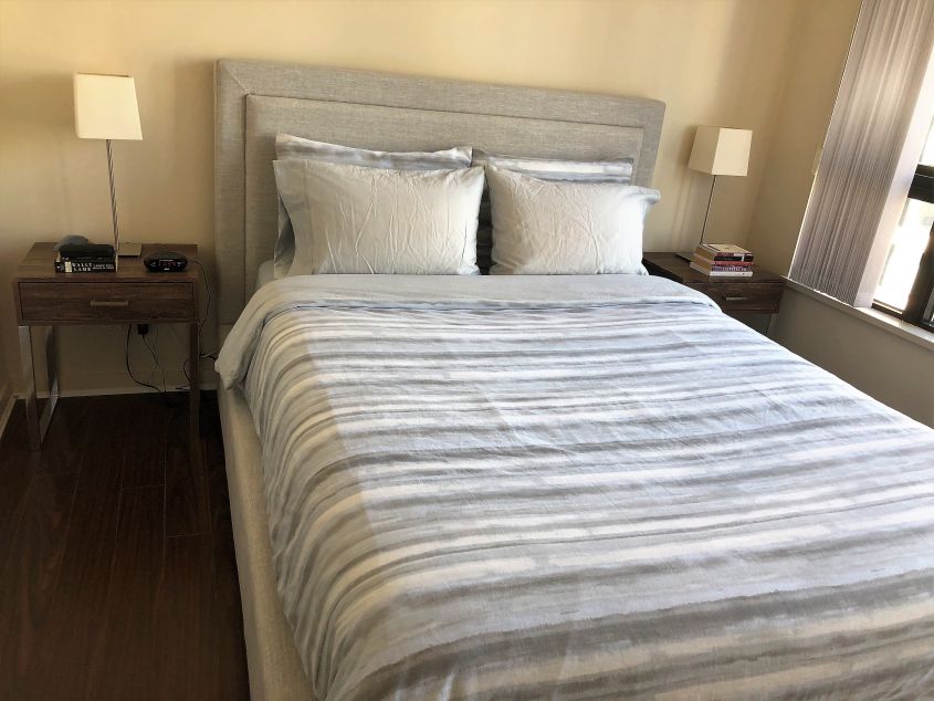 This luxurious one bedroom plus den is centrally located in Yaletown in the sought after Yaletown Park 2. Property features a contemporary kitchen that is furnished with sleek S/S appliances and granite counters, and an open living space that extends to a bedroom that is spacious and comfortably fits a queen sized bed. Residents have access to a fully equipped gym, outdoor common area, and private guest suites at the building.