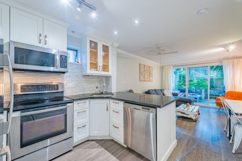 An enchanted gem located in Kitsilano, this 2 bedrooms, 2 level townhome leads to a spacious patio from the living room. Cozy up to the fireplace while sharing a movie on the comfy couch, or cook a simple meal in the well-equipped kitchen. Jericho Beach and 4th Avenue boutique shops and restaurants are just a stroll away.