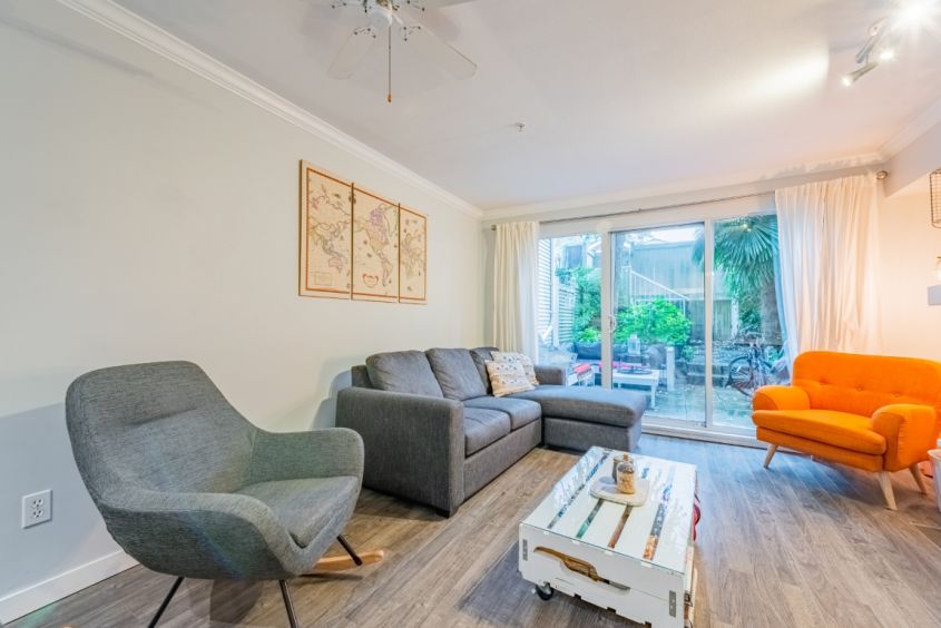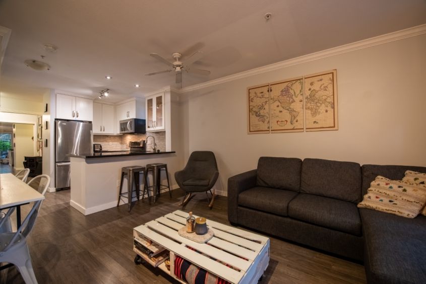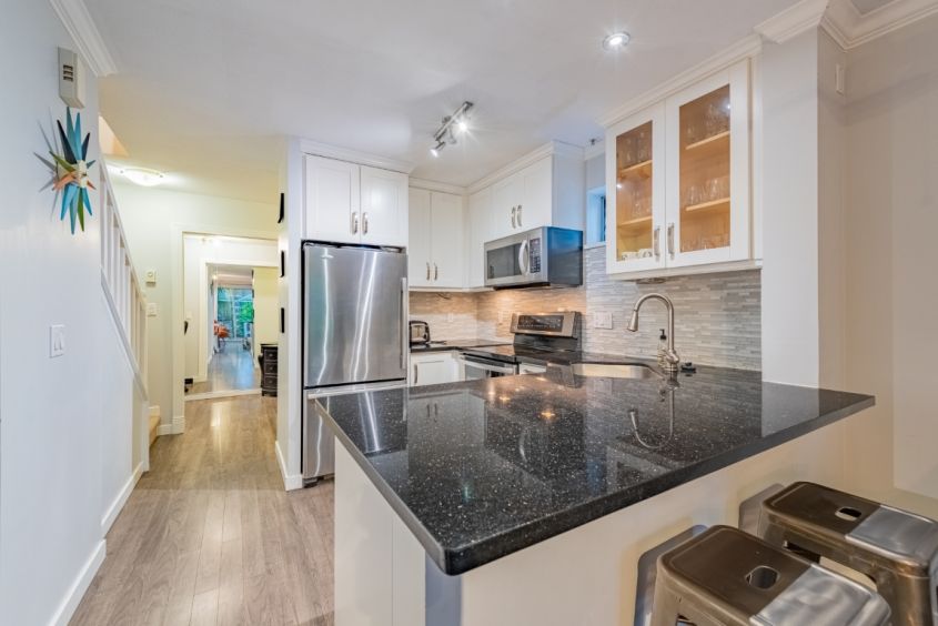 An enchanted gem located in Kitsilano, this 2 bedrooms, 2 level townhome leads to a spacious patio from the living room. Cozy up to the fireplace while sharing a movie on the comfy couch, or cook a simple meal in the well-equipped kitchen. Jericho Beach and 4th Avenue boutique shops and restaurants are just a stroll away.