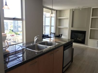 Welcome to MONDRIAN by BOSA! This spacious, bright, southeast corner unit offers 635 sq ft of a functional layout with 1 bedroom, 1 bathroom and a small patio with expansive city views and False Creek view. The kitchen features stainless steel appliances, granite counter-tops and gas range. Other features include hardwood floors and a gas fireplace. This building has high-speed elevators and wonderful amenities!