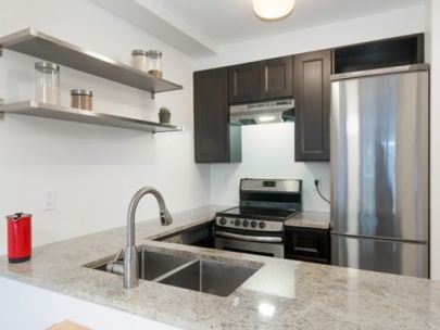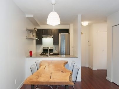 Well maintained 1 bedroom suite located on the quiet side of the building. Offers 479 sq ft of open concept layout with 1 bedroom, brand new bathroom, renovated kitchen with stainless steel appliances and hardwood floors throughout. Shared laundry is located on the main floor right across your suite. Other features include 374 sq ft private patio and 1 underground parking stall.